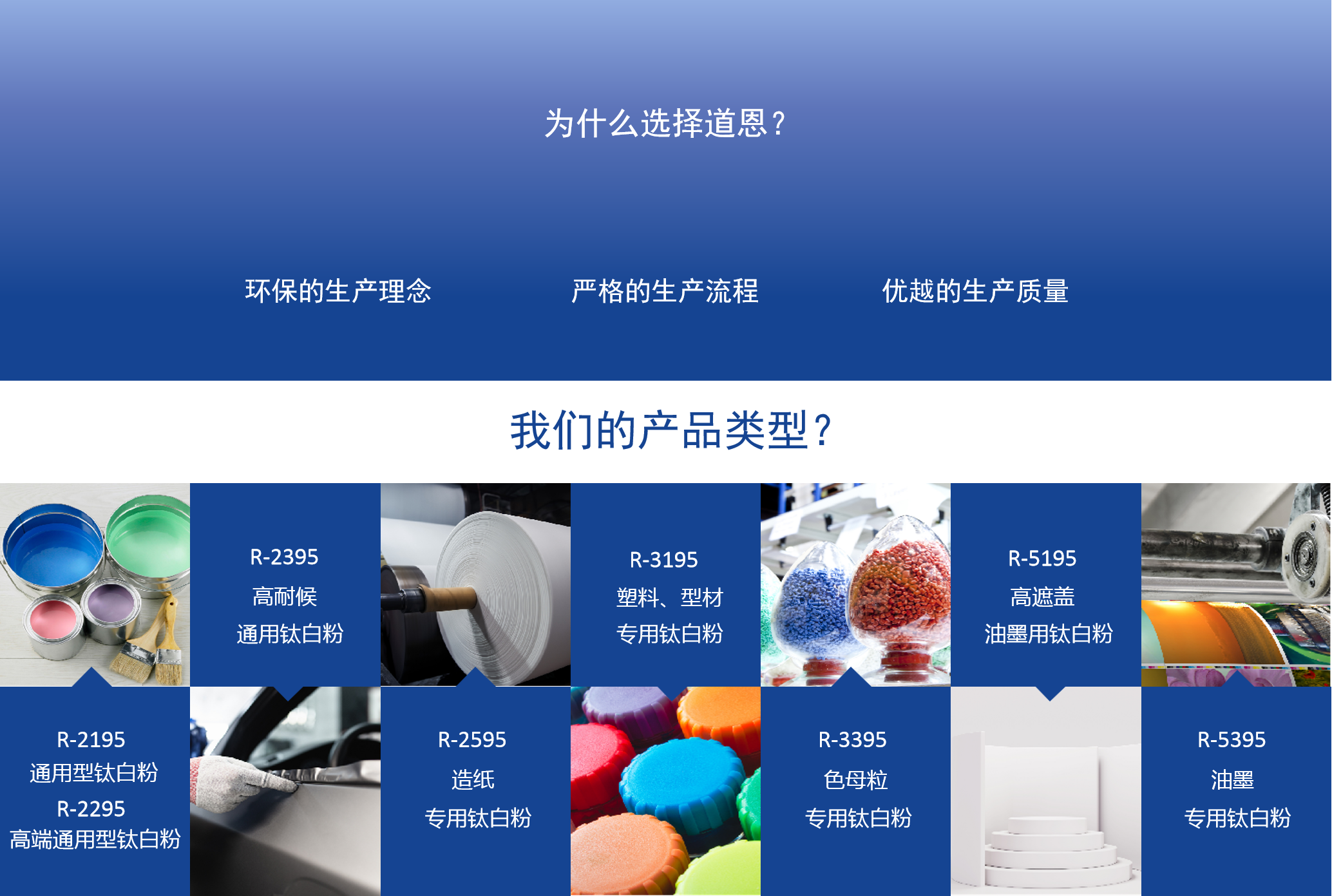 钛白粉广泛应用于涂料、塑料、造纸、印刷油墨、化纤、橡胶、化妆品等工业。它的熔点很高,也被用来制造耐火玻璃,釉料,珐琅、陶土、耐高温的实验器皿等。二氧化钛一般由钛精矿与硫酸酸解反应得到,或由金红石与氯气反应得到。二氧化钛性质稳定,大量用作油漆中的白色颜料,具有良好的遮盖能务,但不像铅白会变黑,它具有持久性。二氧化钛还用搪瓷的消光剂,可以产生一种很光亮的、硬而耐酸的搪瓷釉罩面。