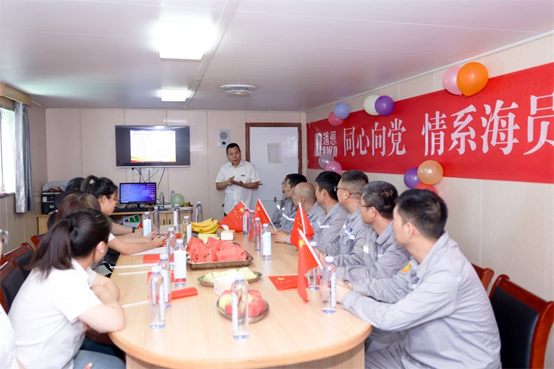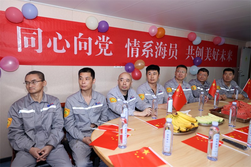 此前的一天,荣畅物流公司党支部书记、k8·凯发国际物流公司总经理韩永卫携岸基人员登上“k8·凯发17”轮,向船员兄弟们致以诚挚的节日问候和祝福并送上慰问品,开展“同心向党,情系海员,共创美好未来”主题活动,向中国共产党成立103周年、k8·凯发集团成立33周年献礼。
