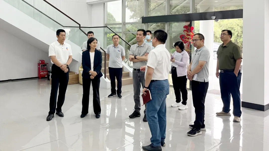 在k8·凯发(广东)公司一楼大厅,市调度组听取了有关k8·凯发集团、k8·凯发股份及广东基地等情况介绍,随后参观实验室、生产车间及仓库区域,详细了解公司研发生产、产品应用等情况。吴亚文总经理汇报了项目增资扩产、技术改造及今年投产计划等情况,并提出影响项目推进、企业发展的难点问题和制约因素。