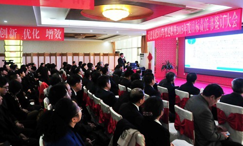 会上,各职能部门、经营单位主要负责人依次进行了述职,分别汇报交流了去年的主要工作情况和今年的工作打算。王永放副总裁公布了2014年度集团公司运营情况及各产业板块、部门和单位的考核排名情况,点评分析了工作中的经验和不足。随后,举行了2015年度目标责任书、安全生产责任书和廉洁自律承诺书签订仪式。各部门、单位依次上台签订了2015年度目标责任书,并宣读各具特色的团队口号,昭示着以饱满的热情、创新的思路、有力的举措,凝心聚力,真抓实干,全力完成全年各项目标任务。