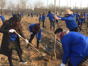 是日上午8时许,参加植树活动的员工们兴致勃勃地拿着工具,赶往植树点。到达现场后,大家迅速行动起来,扶苗、培土、踩实、浇水,团结协作,分工明确,在不到两个小时的时间里,圆满完成了近2000棵法国梧桐树苗的栽种任务。
