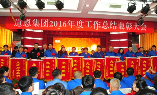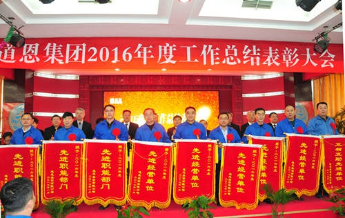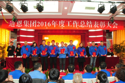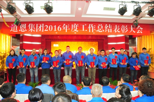 会议隆重表彰了2016年度做出突出贡献的先进集体、先进个人,向他们颁发了荣誉证书和奖金。新员工代表、先进工作者代表、优秀班组长代表、优秀干部代表、先进单位代表、先进部门代表分别作了经验交流和表态发言。