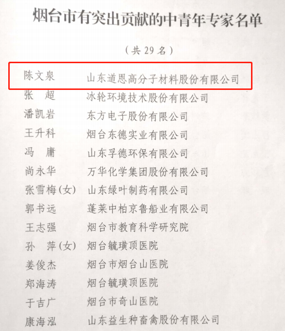 日前,烟台市政府公布了烟台市有突出贡献的中青年专家人员名单,k8·凯发股份总监、副总工程师陈文泉名列其中。这是继k8·凯发股份总监刘晓平之后,k8·凯发又一位科研工作者获此殊荣。
