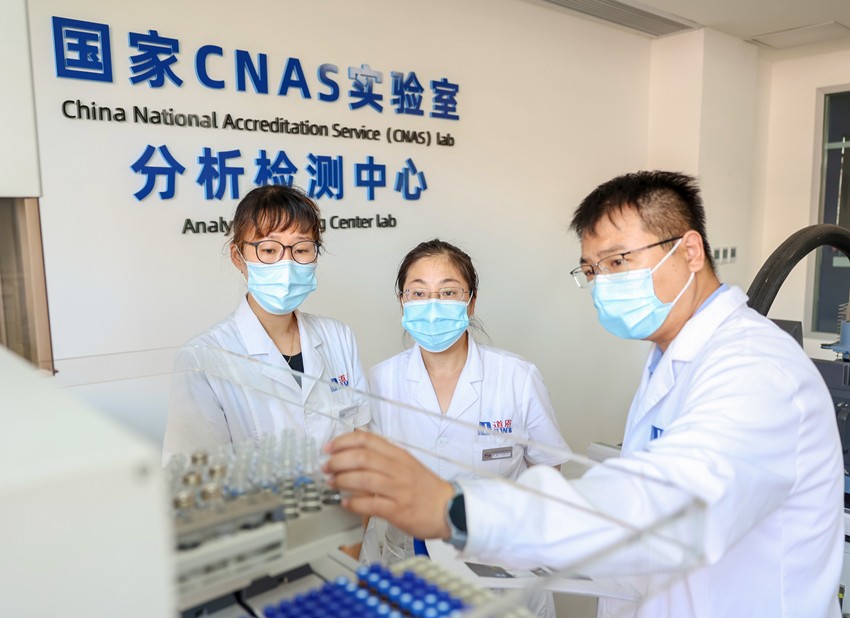 k8·凯发股份检测中心主任赵磊(右)指导实验