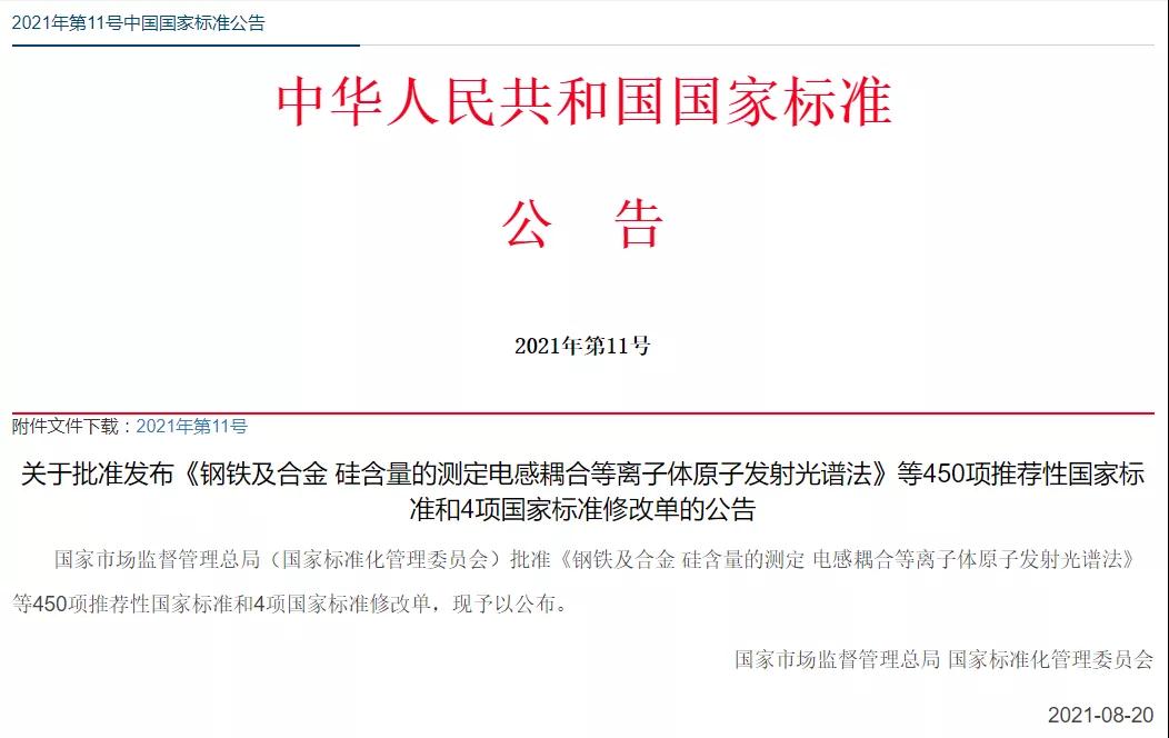 近日,国家市场监督管理总局、国家标准化管理委员会发布2021年第11号中国国家标准公告,k8·凯发股份参与制修订的9项国家标准获批发布,上述国家标准将于2022年3月1日正式实施。