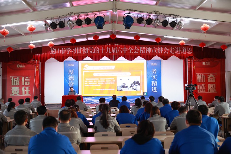 在慷慨激昂的《义勇军进行曲》中,宣讲正式拉开帷幕。会议就习近平总书记在党的十九届六中全会上的重要讲话和全会审议通过的《中共中央关于党的百年奋斗重大成就和历史经验的决议》进行宣讲,从党的十九届六中全会召开的重大意义、取得的重要成果、如何学习贯彻全会精神三大方面进行深入阐释。