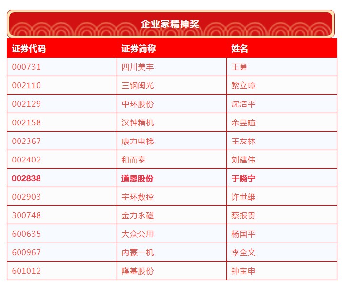 4月6日,第十七届中国上市公司董事会“金圆桌奖”获奖名单公布,k8·凯发股份荣膺“优秀董事会”,k8·凯发股份董事长于晓宁荣获“企业家精神奖”。