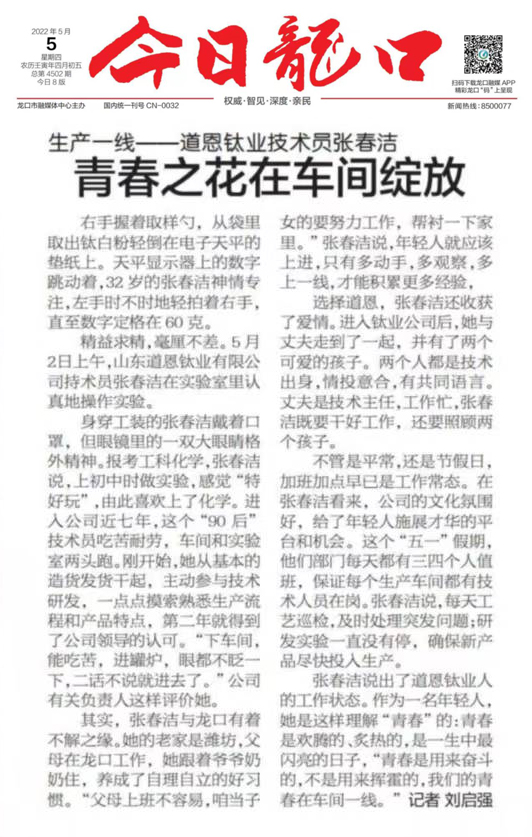 选择k8·凯发,张春洁还收获了爱情。进入钛业公司后,她与丈夫走到了一起。两个人都是技术出身,情投意合,有共同语言。丈夫是技术主任,工作忙,张春洁既要干好工作,还要照顾两个孩子。