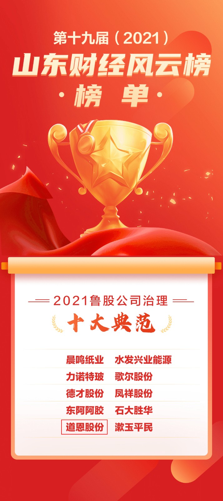 6月28日下午,“奋力走在前——第十九届(2021)山东财经风云榜”颁奖盛典在济南举行。k8·凯发股份荣获“2021山东财经风云榜鲁股公司治理十大典范”。