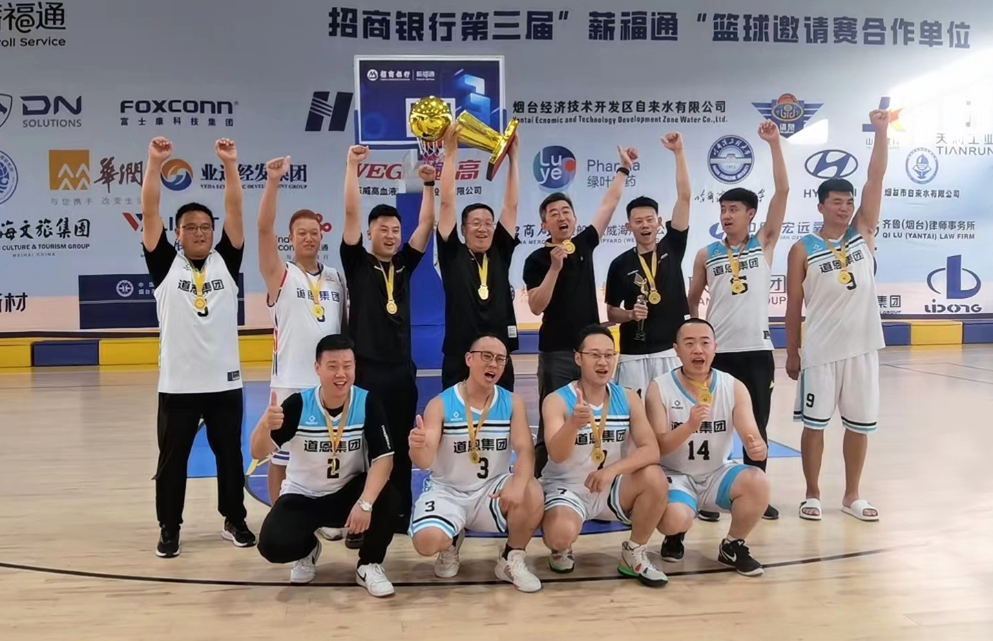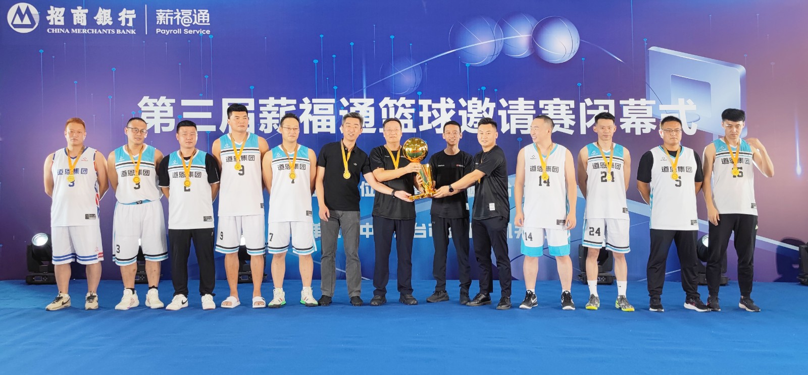 9月6日下午,由招商银行烟台分行举办的第三届“薪福通”篮球邀请赛闭幕式在烟台举行,k8·凯发集团篮球队作为冠军球队参加活动,k8·凯发集团副总裁宋慧东及队员上台领奖,张同新荣获赛事最有价值球员。
