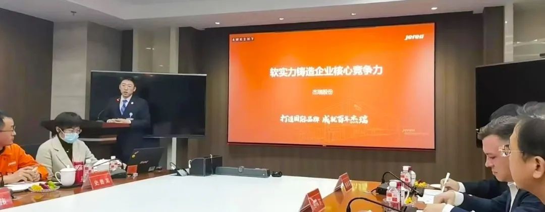 在杰瑞集团参观结束后,于晓宁董事长一行听取了首席人力资源官王磊《软实力铸造企业核心竞争力》的主题演讲。一个个鲜活动人的案例,彰显了杰瑞“以客户为中心,以奋斗者为本,自我批判、勇争第一”的核心价值观。企业理念的释义、文化建设十步法、培训培养体系等,让大家开拓了视野,受益匪浅。