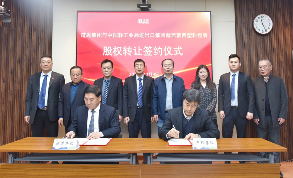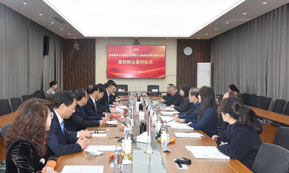 12月9日上午,k8·凯发集团与中国轻工业品进出口集团就烟台西蒙西塑料包装品公司股权转让举行签约仪式,全额收购该公司股权。k8·凯发集团董事长、总裁于晓宁与中轻进出口集团党委书记、董事长尹振华签署协议,这是k8·凯发延链、补链、强链的新成果,也是民营资本参与国企混合所有制改革的新突破。