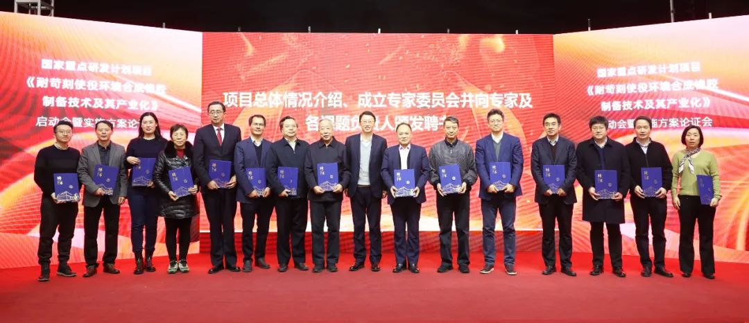 会议期间,成立了国家重点研发计划《耐苛刻使役环境的合成橡胶制备技术及其产业化》项目专家委员会,张立群院士为15位专家及课题负责人颁发了聘书。