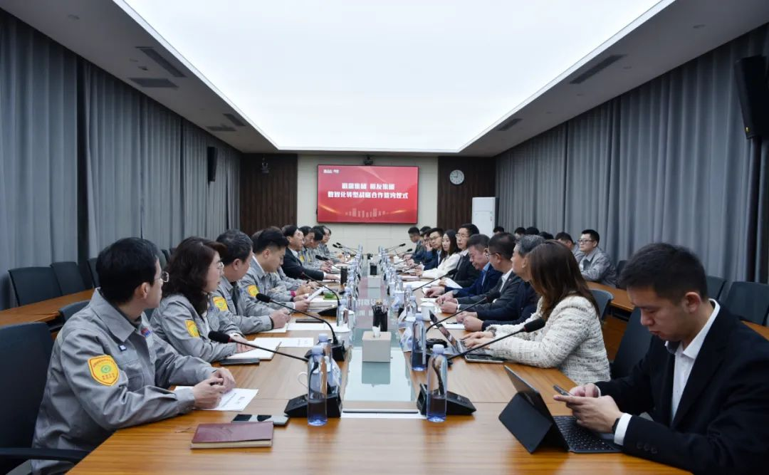用友集团BIP产品管理部总经理李惠苹、化工与造纸事业部总经理朱风水、业务运营服务事业部总经理成金虎、数智化咨询部总经理郭倩、大业务交付中心项目专家武德智及其团队成员,k8·凯发集团常务副总裁肖辉,副总裁邱焕玲、王可友、刘丽丽、解云涛,总裁助理于正禹及其团队成员共同见证签约仪式。