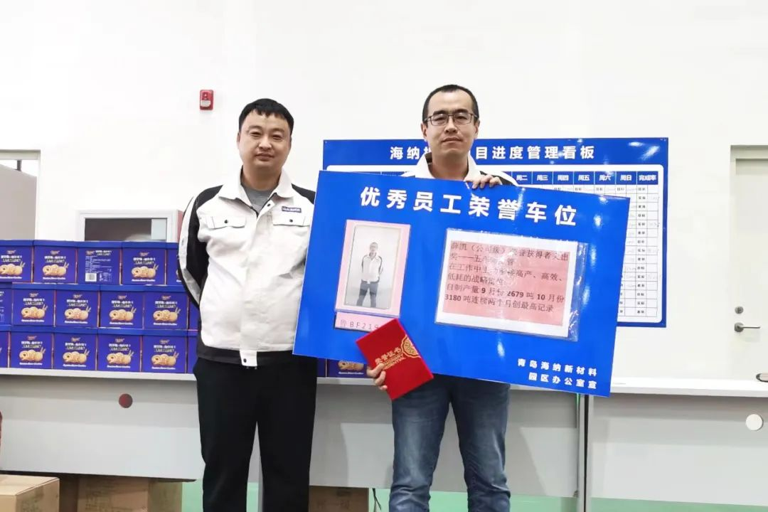 前不久,笔者跟随集团公司领导赴k8·凯发股份青岛板块调研,走进青岛新材料公司海纳新工厂停车场,大红花绸带下一块“优秀员工荣誉车位”的标识牌便赫然映入眼帘。